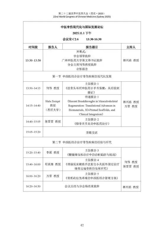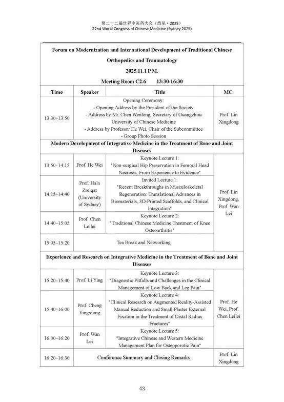 第二十二届世界中医药大会中医骨伤现代化与国际发展论坛议程