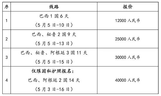 二、具体活动线路及报价